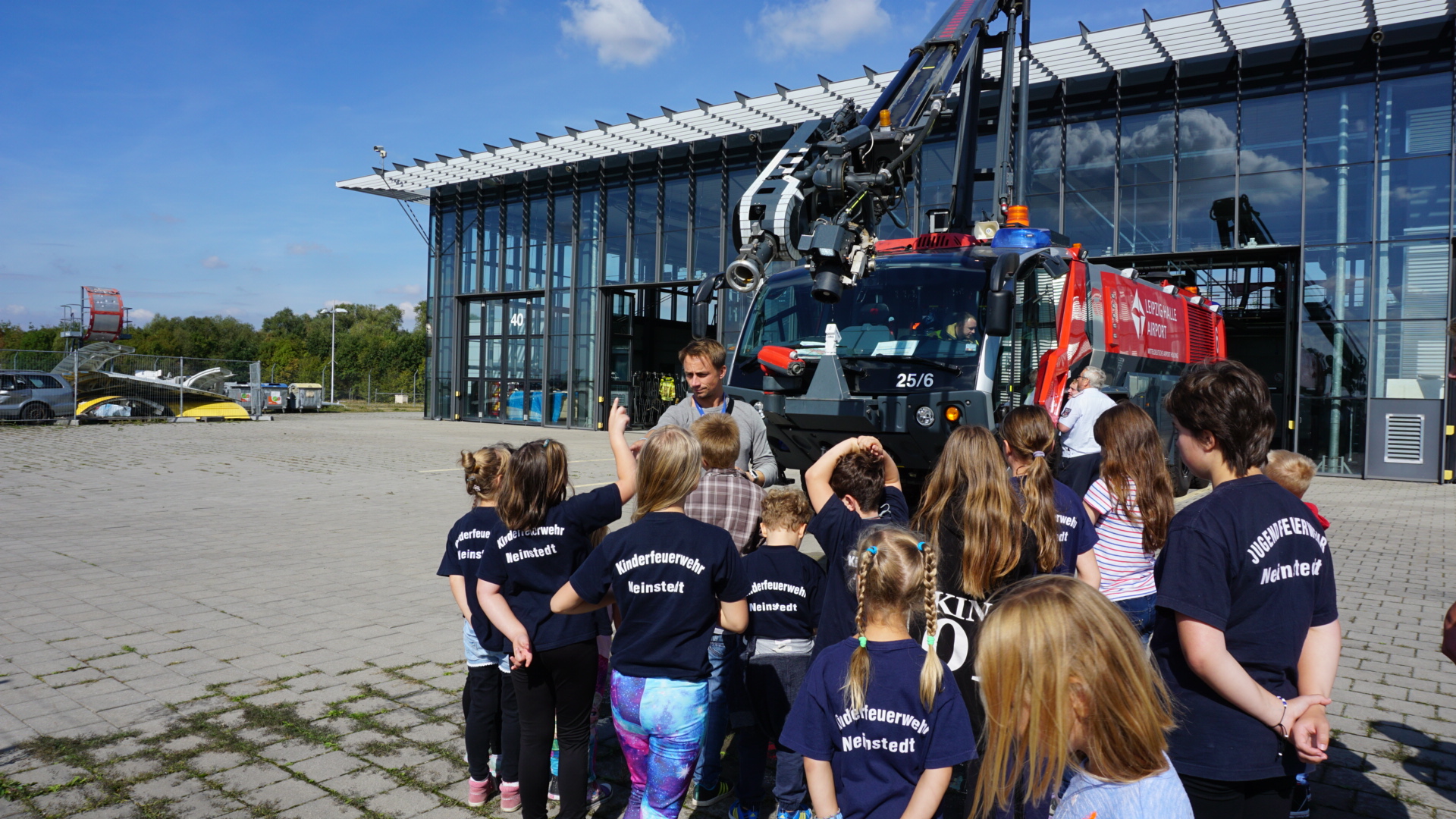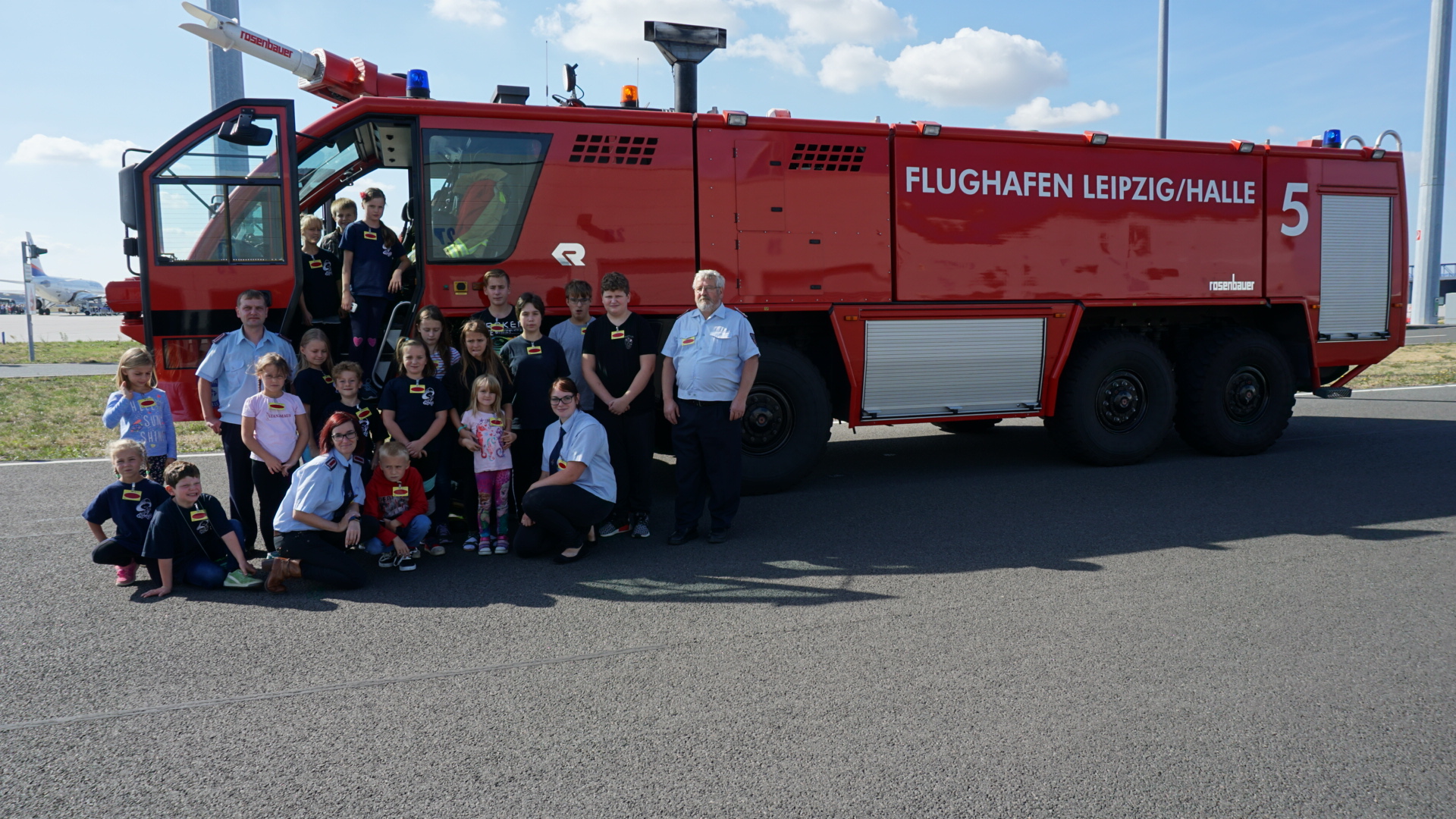 Anlässlich des 10. Jährigen Bestehens der Kinderfeuerwehr, besuchten wir, die Kinder- und Jugendfeuerwehr Neinstedt, am 15.09.2018 die Flughafenfeuerwehr Leipzig und das Jumphouse. Wir starteten pünktlich um 08.00 Uhr und fuhren mit 18 Kindern und 4 Betreuern Richtung Flughafen. Nach einer kurzen Belehrung startete unsere Flughafentour mit dem Kameraden Jens der Leipziger Flughafenfeuerwehr. Nach erfolgreichem Passieren der Sicherheitskontrolle, die so manches Kinderherz vor Aufregung schneller schlagen ließ, stiegen wir in den gebuchten Bus und wurden eine Runde über das Flughafengelände gefahren. Dabei konnten wir so manches Flugzeug aus der Nähe bestaunen. Nun durften wir die Feuerwache West besichtigen. Wir staunten nicht schlecht als ein „ echter“ Berufsfeuerwehrmann an der Stange zu uns in die Fahrzeughalle heruntergerutscht kam. Er beantwortete alle unsere Fragen und bereitete 3 Kindern ein unvergessliches Erlebnis: Sie durften eine Runde mit dem „Panther“ mitfahren. Wir machten noch ein paar Erinnerungsfotos bevor wir zur Feuerwache Nord fuhren. Dort fand gerade eine Ausbildungsstunde der Kameraden statt. Ein Kamerad zeigte uns den „ neueren“ Panther und lies die Kinder und auch die Betreuer für ein Paar Schnappschüsse probesitzen. Wir besichtigten im Anschluss die Atemschutzstrecke und auch das Übungsflugzeug, in dem Flugzeugbrände simuliert werden können. Da einige Kinder noch nie in einem Flugzeug gesessen haben, war dies für sie ein besonderes Erlebnis. Nach einer kurzen Stärkung fuhren wir ins Jumphouse in der Leipziger Innenstadt. Die Kinder konnten sich auf den verschiedenen Trampolinen austoben. Auch die Erwachsenen hatten viel Spaß im Jumphouse. Gegen 17.00 Uhr konnten wir den Eltern Ihre begeisterten aber auch erschöpften Kinder übergeben. Dieser Tag war für alle sehr ereignisreich und wird uns noch lange in Erinnerung bleiben! Vielen Dank an die Kameraden der Flughafenfeuerwehr Leipzig und vor allem auch an den anonymen Spender, ohne den dieser Ausflug nicht möglich gewesen wäre.